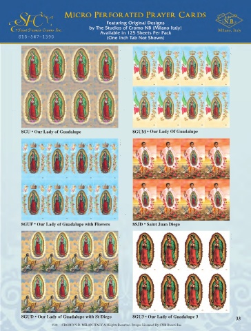 CROMO N.B. Guadalupe w/Flowers 8 UP Printed in Italy 8-GUF © CROMO N.B. CROMO N.B. SAINT JUAN DIEGO 8 UP 8-SJD Printed in Italy © CROMO N.B.