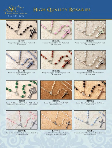 Rosary Oval Shamrock 9mm Beads 24” Silver linked Rosary Clear 7mm Crystal Beads 19.5” Rosary Black 7mm Crystal Beads 19.5” Silver