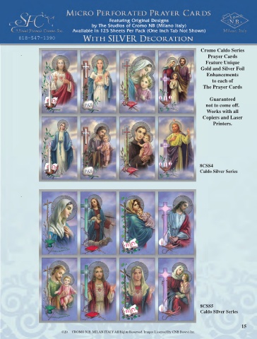 CROMO N.B. Instructions for use and preparation of Religious Ceremonial greeting cards: 1) Load card sheets in  printer tray. 2) Transfer deceased information on the template or incorporate into your computer program.  CALDO SILVER SERIES 3) Check first copy to insure correct alignment. 4) Make desired number of cards. 5) Fold cards two   8 UP times - to the front / then the back and separate cards. 6) Save template / computer information and include   8-CSS5   © CR