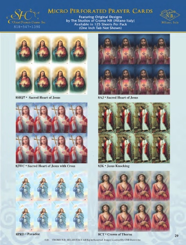 CROMO N.B.  Sacred Heart with  Heart of Hand  Printed in Italy  8 UP  © CROMO N.B.  8-SHJ7